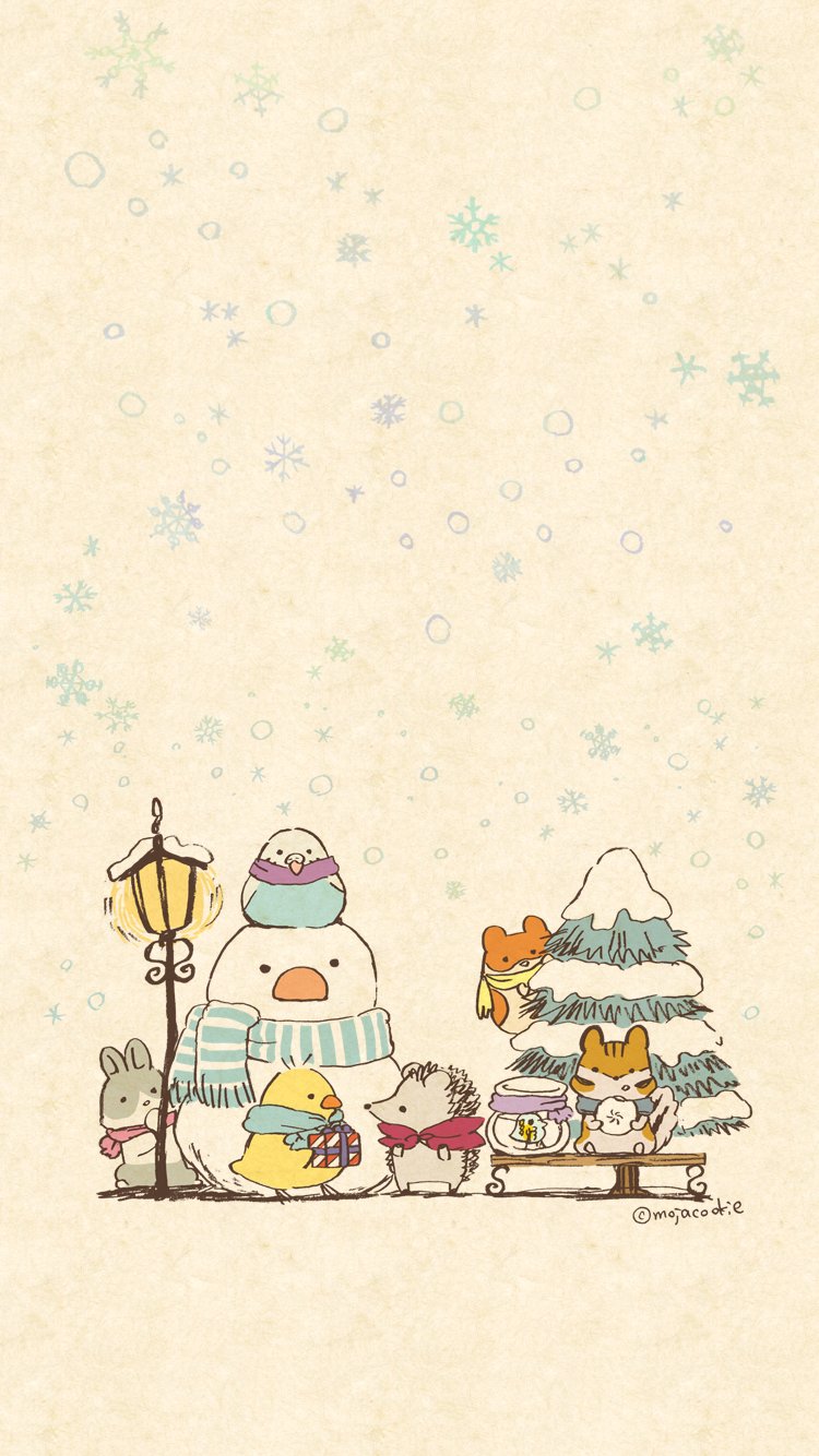 もじゃクッキー 冬っぽい待ち受け画像作りました 微調整した2種をご用意しましたので お手持ちのスマホに合わせてみてくださいな どうぶつさん 待ち受け 壁紙